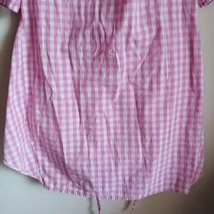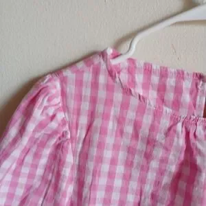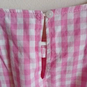 Fashion- Pink Gingham Elbow Sleeves with Wrap Waist Front/Side Tie Dress