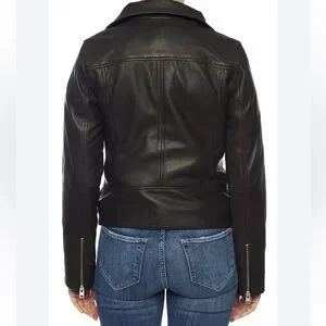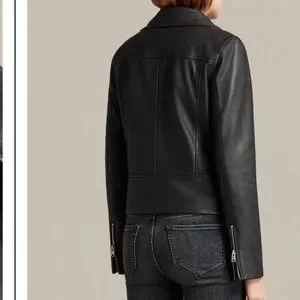 AllSaints Bales Leather Biker Jacket Black Lamb Leather Asymmetric Zip – US 0
