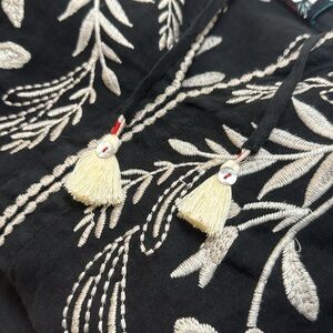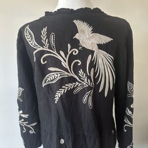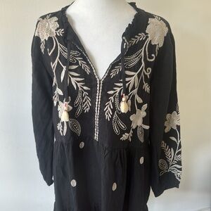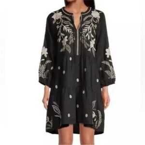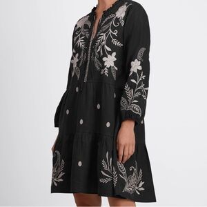 A classic bohemian style, the Frankie Tiered Field Dress lends an ethereal touch to your vacation wardrobe. Cut in a relaxed fit, this tiered dress is enhanced by a romantic floral placement embroidery and is crafted from pure linen - a practical and breathable choice for warmer weather. Finished with a tie neck and tiered hem, this dress is a chic option for sun-soaked locations and poolside lounging.