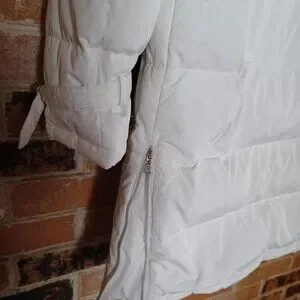 Utex Design White Down Puffer Coat w/ Fur Trim