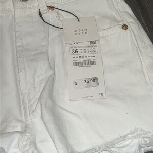 NWT Zara Hi-Rise White Distressed Denim Shorts Size 4