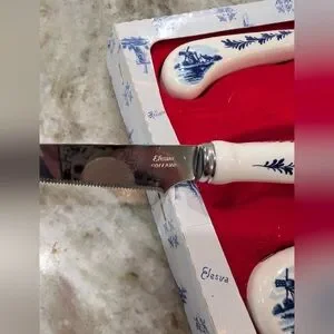 Delft Blue Amsterdam Holland Elesva Windmill Porcelain handle Set