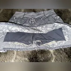 Lululemon 2 Floral Gray shorts Skirt tennis Run In The Sun Beachy Floral White