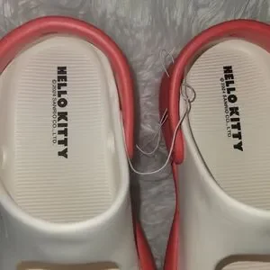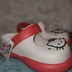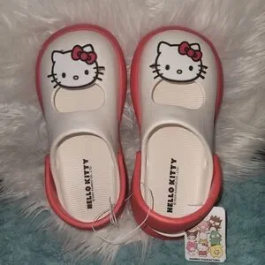 Adorable Hello Kitty kids shoes featuring a charming red and white design. Perfect for little fans of Hello Kitty, these shoes offer comfort and style.