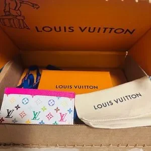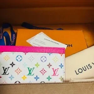 100% authentic. Just came in from LV. With box, bow, dustbin and original outer box. This elegant Louis Vuitton accessory combines the classic monogram design with a modern twist, featuring a white background and pink accents. Ideal for organizing your cards, it offers a chic and functional addition to your collection. Sold out and was difficult to get. Price is firm here.