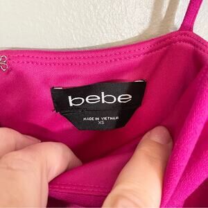 Bebe Sweetheart Neck Sleeveless Scuba Crepe Slit Jumpsuit Fuchsia Pink XS NWT