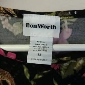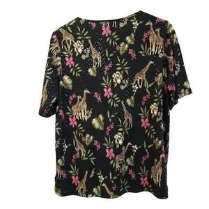 Bon Worth Giraffe Tshirt Size Medium Sequins Flowers Floral Black Pink