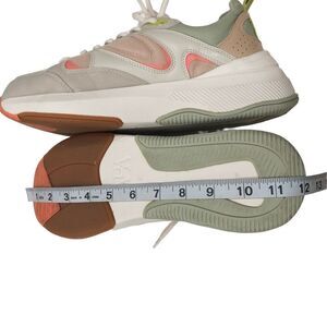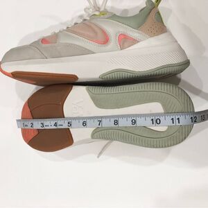 Beautiful sneakers with colors of tan, cream, peach, sage green. Nice and cushioned and in excellent condition. They have been washed including shoestrings. Size 39 which I think is comparable to US size 8, see measurements.