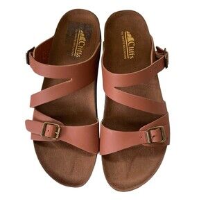 Cliffs by White Mountain Womens Size 10M Brown Faux Leather Sandals Cork Footbed