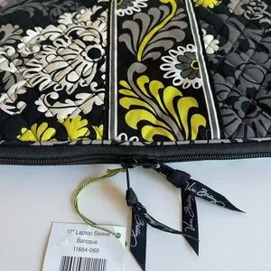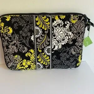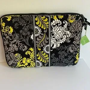 Vera Bradley 17” Laptop Sleeve Baroque Black and Yellow Quilted Women's Bag NWT.
