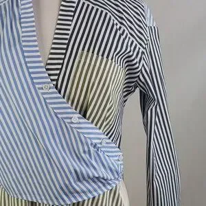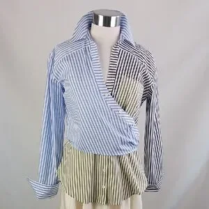 Veronica Beard Blue Striped/Gray Striped Blouse.
