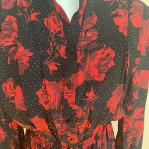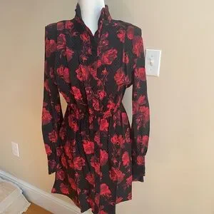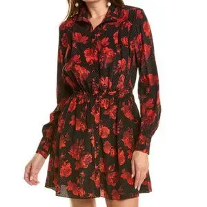 Elegant and effortlessly chic, this 100% silk shirtdress from The Kooples features a romantic black and rose floral print with refined details throughout.