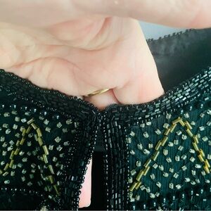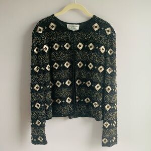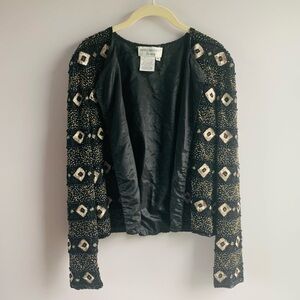 Papell Boutique Vintage Beaded Evening Jacket Black Silver Gold Embroidery Small