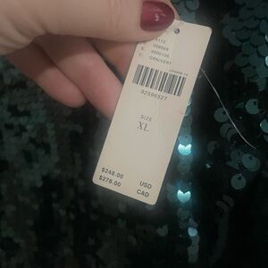 Gorgeous 100% cashmere sweater with emerald green sequins front and back by pilcro. Purchased at anthropologie and new with tags. Size XL.