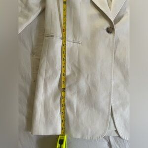 I wear a size 10 and generally a size medium. I’m 5’10”. This jacket fits me perfectly with a camisole but it is slightly uncomfortable with a long sleeve shirt underneath. It’s labeled a size 6 and I would say it’s roomy for a size 6. It’s also a longer jacket…hits me below my thighs. The shape is really nice on this…oversized but not boxy.