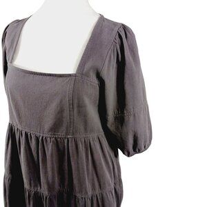 Altar'd State, Gray Tiered Cotton Mini Dress, Size Small Short Sleeve, Fringed