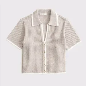 Cozy tan knit button up polo sweater. Perfect for layering. New with tags on