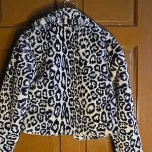 Beautiful very soft animal print jkt. is collared with long sleeves and side pockets. Measures Pit to Pit 19 inches. Shoulder to Hem 20 1/2 inches. Very Nice Quality. NWT.