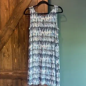 This women’s size small sundress by Lilly Pulitzer features a vibrant sailboat pattern and a sleeveless design, perfect for casual resort wear. The dress showcases a beautiful blend of white, blue and touches of hot pink, offering a relaxed and flowing silhouette with crisscross back. Ideal for warm weather, can be worn as a sundress or coverup. Only worn a handful of times with my daughter—matching daughter dress also available in my closet. In good used condition from a smoke free, hypoallergenic friendly dog home.
