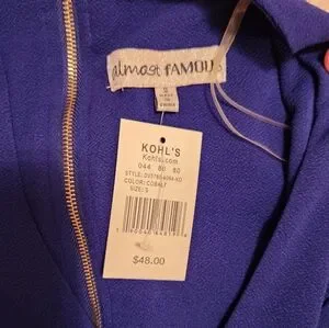 Beautiful blue Dress, size small, zipper in back. Gives you a sexy shape. Brand new, never worn!
