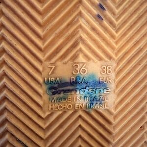This unique donation came to me from a supporter of my kitten rescue mission, excited about this find. This stylish and wild pair of clogs offers a fresh, funky, even throw-back Y2K vibe. They have minor wear and scuffs but overall in great condition. Good tread, no feet stains on the interior. An old thrift store stamp at the bottom from the donors original purchase is shown.