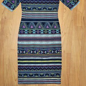XHILARATION fitted Women's Colorful Aztec Print Stretch Midi Pull On MED