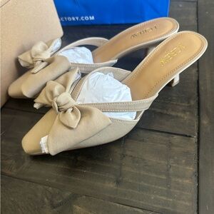 J. Crew Women's Tan Bow Heeled Mules
