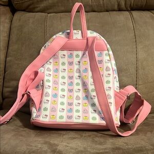 Cute Sanrio Loungefly backpack with pastel colors. Features a fun character print and front pocket.