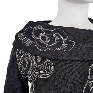soft sweater with a foldover neckline and overall abstract floral embroidery. has a built-in cami underneath.