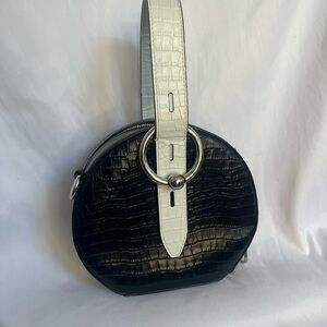 Rebecca Minkoff Black and White Croc-Embossed Circle Bag