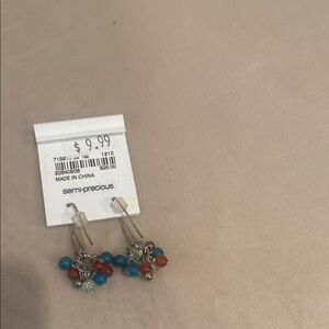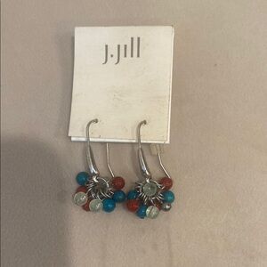 Add a pop of color to your outfit with these J. Jill earrings. Featuring silver hooks and vibrant semi-precious beads in red, blue, and silver, these earrings are perfect for any occasion.