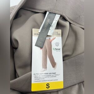 Women’s Mondetta wide leg scuba material pants size S color Tan. Waist 13 inseam 30” rise 11.5 NWT retails for $29.