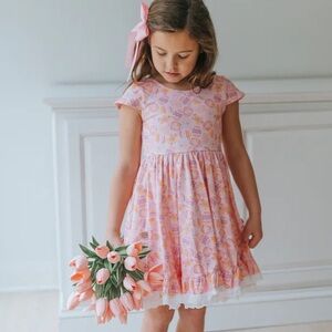 NWT Cheeky Plum Bunny Trail 2T Myra Knit Dress Pink Floral Easter Eggs Dress