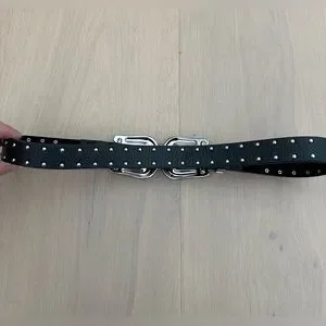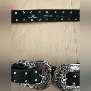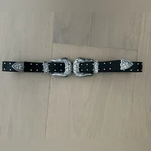 Super rare style and on trend for this season featuring ornate silver buckles and studs throughout the belt. Perfect for festival season and western looks.