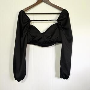 - Papermoon Black Satin Long Sleeve Backless Crop Top Women's Large