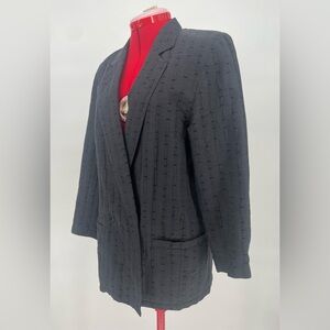 1980s VTG Escada Designer Dark Gray Textured Print Blazer
