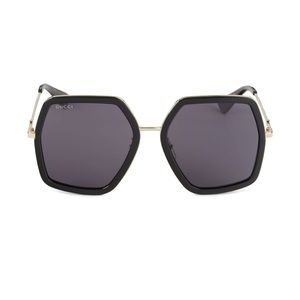 Big squared trendy shape, characterized by acetate rim that enrich the styleSmall GG interlocking soldered on temples