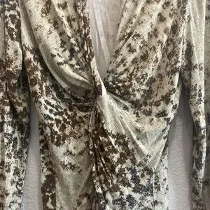 Cabi 675 Glamour Tee Animal Print Long Sleeve Knit Twist Blouse Size Large