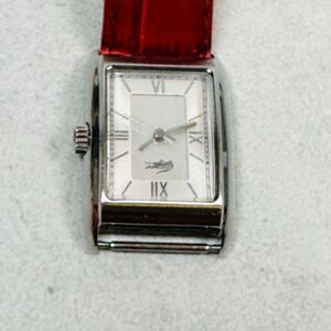 Lacoste Watch Womens 24mm Silver Tone Red Leather Strap New Battery FLAWED READ