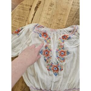 Vintage 1940s Floral Embroidered Sheer Hungarian Peasant Folk Blouse Top Antique