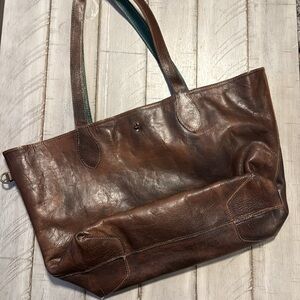 Bed Stu Teak and Teal Reversible Leather Tote Bag