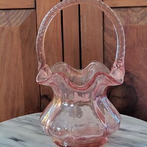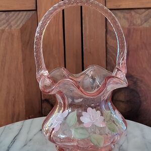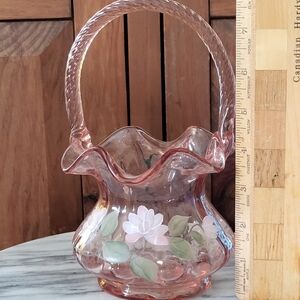 Fenton Painted Pink Glass Basket