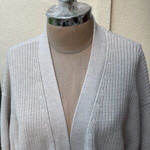 Aritzia Wilfred Free beautiful long stretchy Unwind open Cardigan with fabulous deep pockets. In a beautiful Heather birch color. A light grayish/silver color. Beautiful!