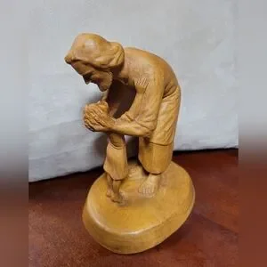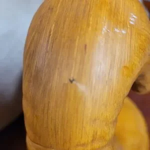 Beautifully handcrafted wooden sculpture featuring a warm brown finish. Perfect for adding a touch of elegance to your home decor. Pre owned gorgeous except small knick in wood and white scuff mark other then that good condition see pics.