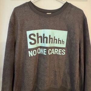 Juniors size M (7/9). “Shhhhhh No One Cares” long sleeve grey shirt. Super soft. Feels like a cozy blanket. ⭐️ Bundle to save ⭐️