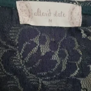 Altered States Women's Blue Plaid Lace Top With Embroideres Bell Sleeves. Medium