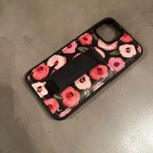 Stylish phone case with a vibrant floral design. Features a black base with pink and red flowers. Perfect for adding a touch of elegance to your device.