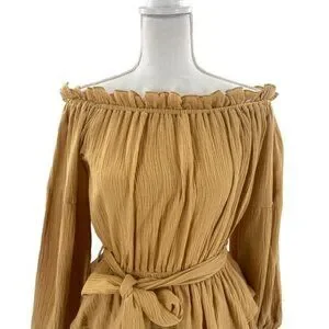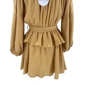 Petal & Pup NEW Callie Off the Shoulder Gauzy Ruffle Mini Dress Yellow Size L