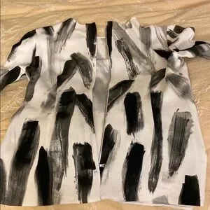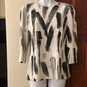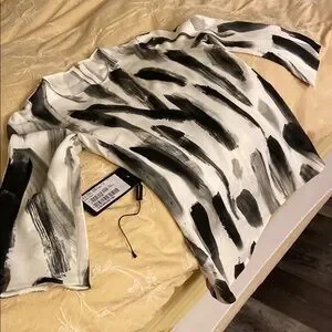 Elevate your style with this chic black and white top. Perfect for any occasion, this top features an abstract design that adds a modern touch to your wardrobe. IT size44, US4-6. Excellent condition.Worn a few times. Because I have sensitive skin one tag removed.