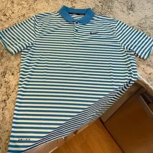 Nike Dry Fit Men's Blue Striped Polo Shirt Size M